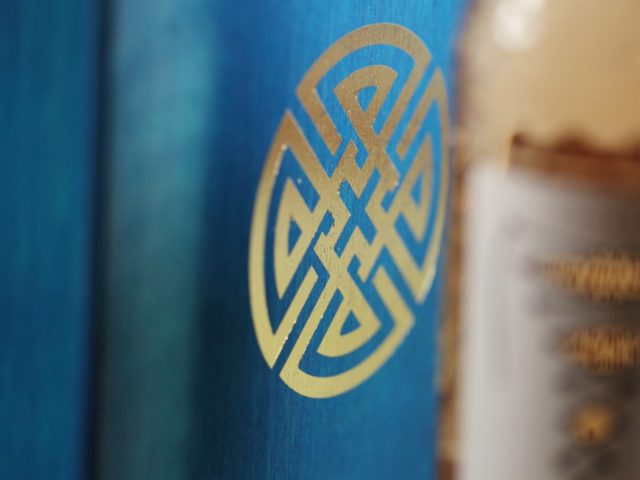 Ξύλινο Κουτί με Χρυσό Λογότυπο με 2 φιάλες κρασί – (Γαλάζιο)