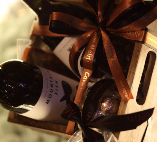 Ξύλινο Συρταρωτό Κουτί Με Delicatessen & Κρασιά