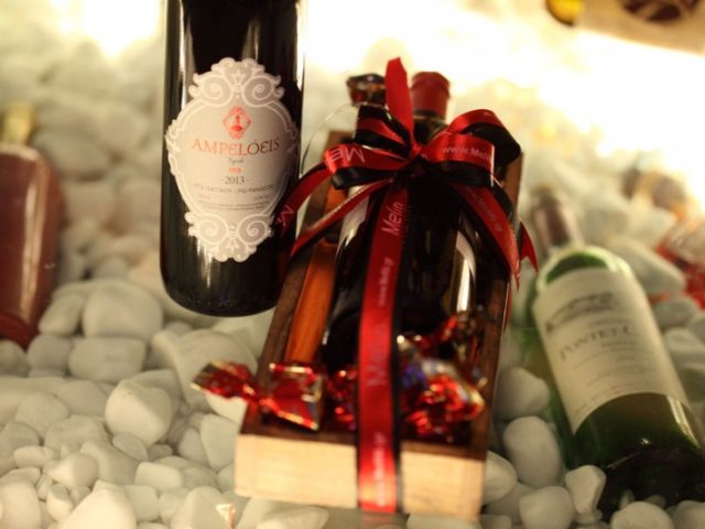 Ξύλινος Δίσκος με Syrah Ερυθρό & Βέλγικες Πραλίνες