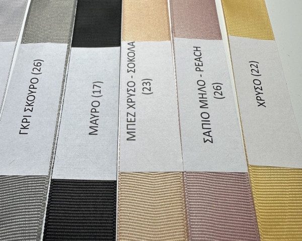 Η μικρότερη παραγγελία είναι τα 1000μ και υπάρχουν 2 διαστάσεις (φάρδος) κορδέλας . Η 2.5 cm και η 1.5cm.