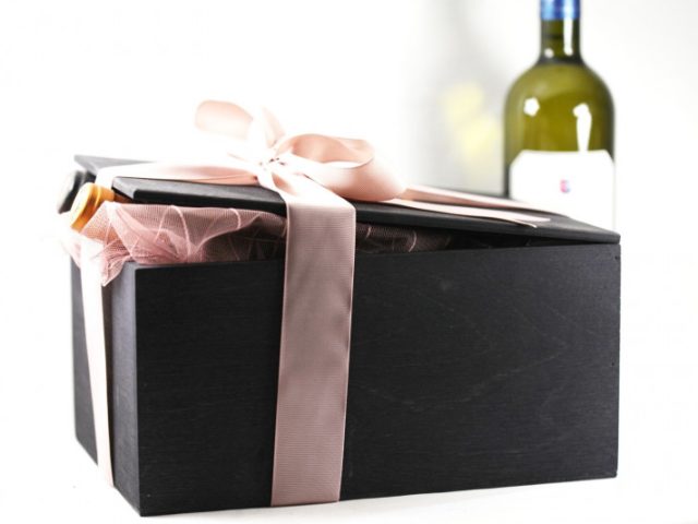 Ξύλινο κουτί με χρυσό λογότυπο. Περιέχει δύο φιάλες κρασί, μια φιάλη Ροζέ Από την Γαλλία – 1 φιάλη Λευκό Αρωματικό κρασί από το Κτήμα Βιβλία Χώρα και 1 κουτί με χειροποίητες Σοκολατένιες Γαλλικές Τρούφες . Ιδανικό δώρο για εσάς και όσους αγαπάτε… Μία πραγματική έκπληξη!!!